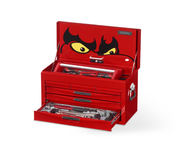 • Drop front with the TengTools logo to cover the drawers when the box is closed