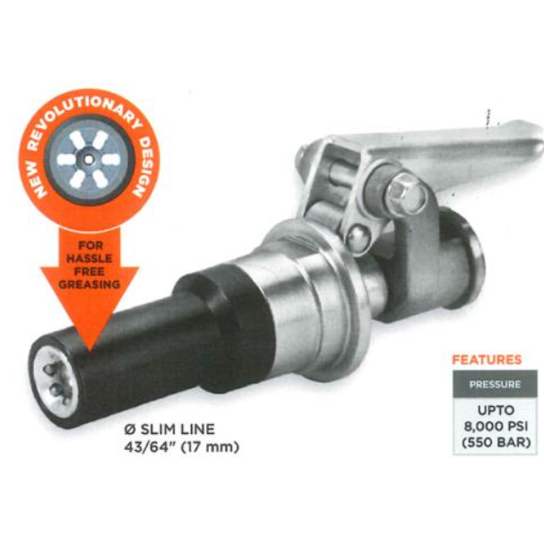 The Groz Quick-Lock is designed for quick & convenient disengagment of coupler from grease/zerk fittings under pressure. Design permits usage of all profiles of grease fittings – SAE & Metric.