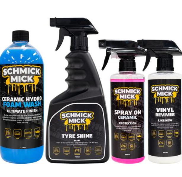 Keep cleaning easy with the Schmick Mick Ultimate Care Pack. Four of our best-selling products to make your car, truck, motorbike, or trailer looking schmick.
