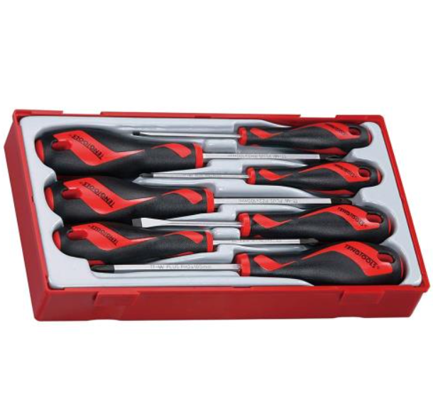 • Set of 7 screwdrivers including flat as well as Phillips and Pozidriv tips.