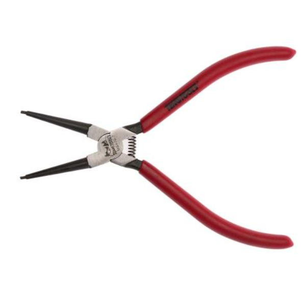 Snap ring (circlip) pliers. Chrome vanadium. Polished head. Vinyl grip handles. Return spring. DIN 5254.