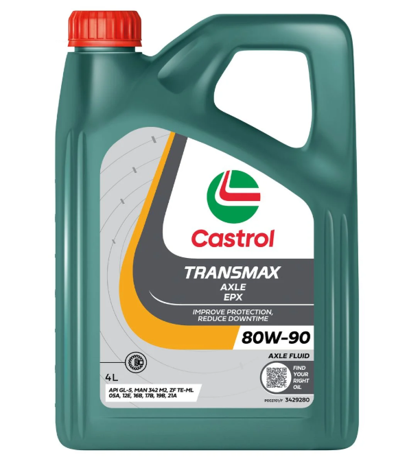 Castrol TRANSMAX Axle EPX 80W-90 is a multipurpose axle oil which may be used in differentials, final drives and other applications in passenger cars and commercial vehicles where API GL-5 performance is required. It is approved by MAN and ZF for use in a range of commercial applications including axles in off-road and agricultural equipment.